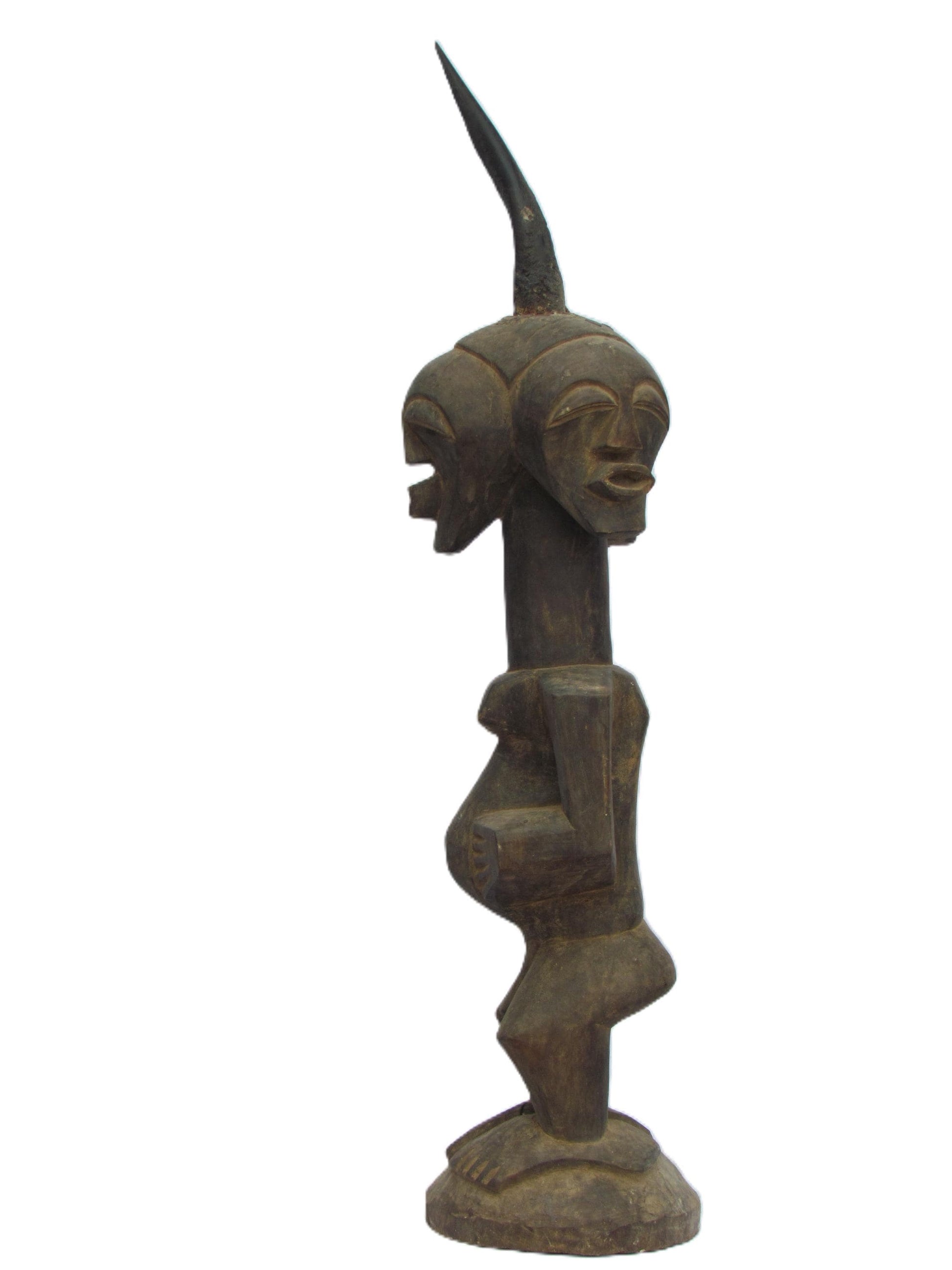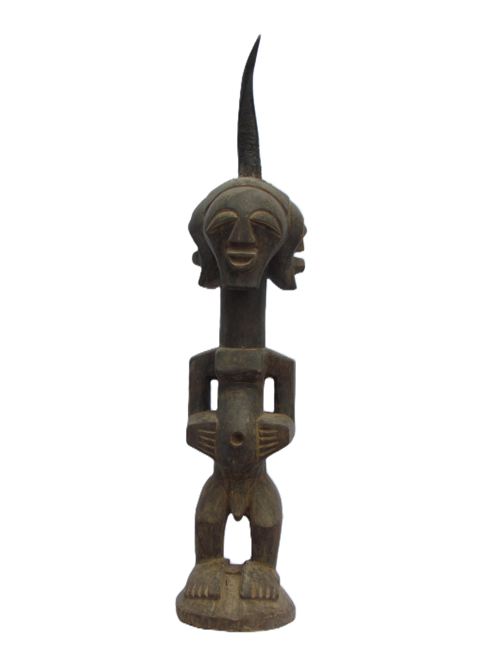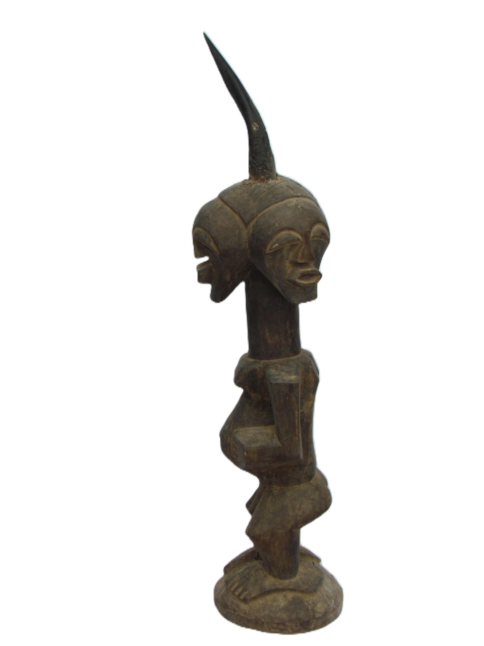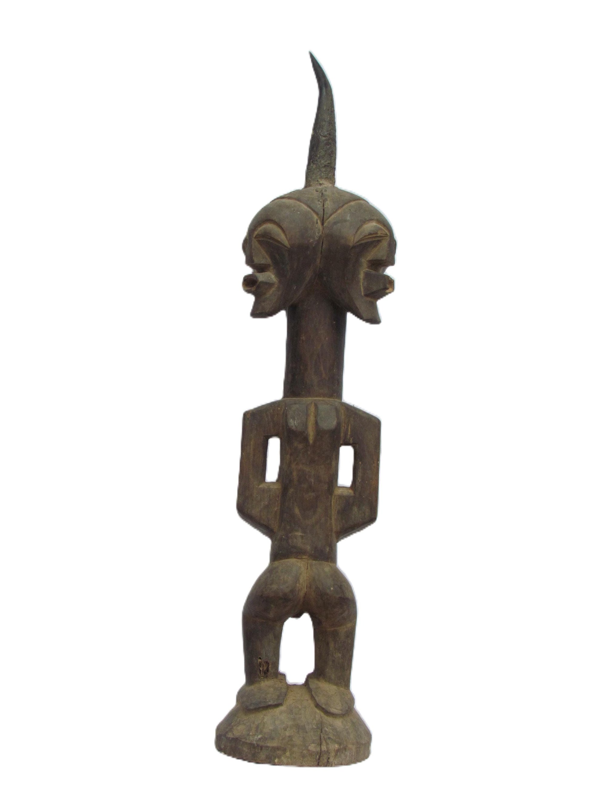 Figura masculina Songye marrón con cuatro caras, RDC - Arte tribal africano.