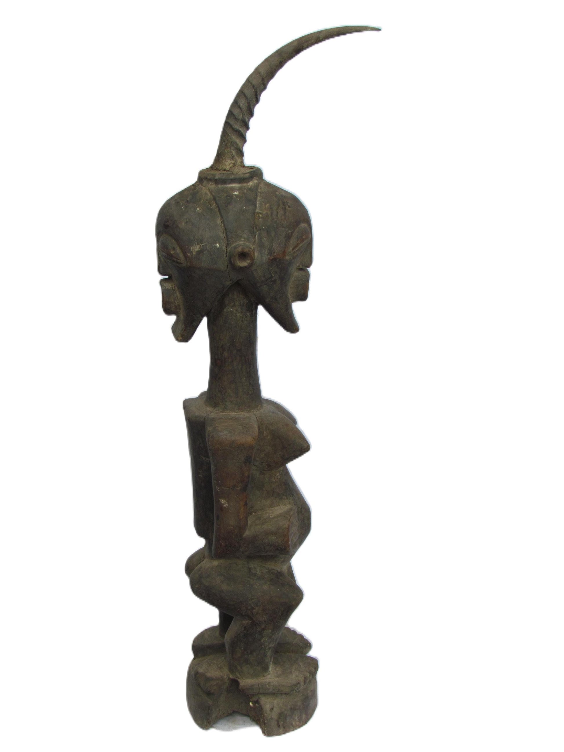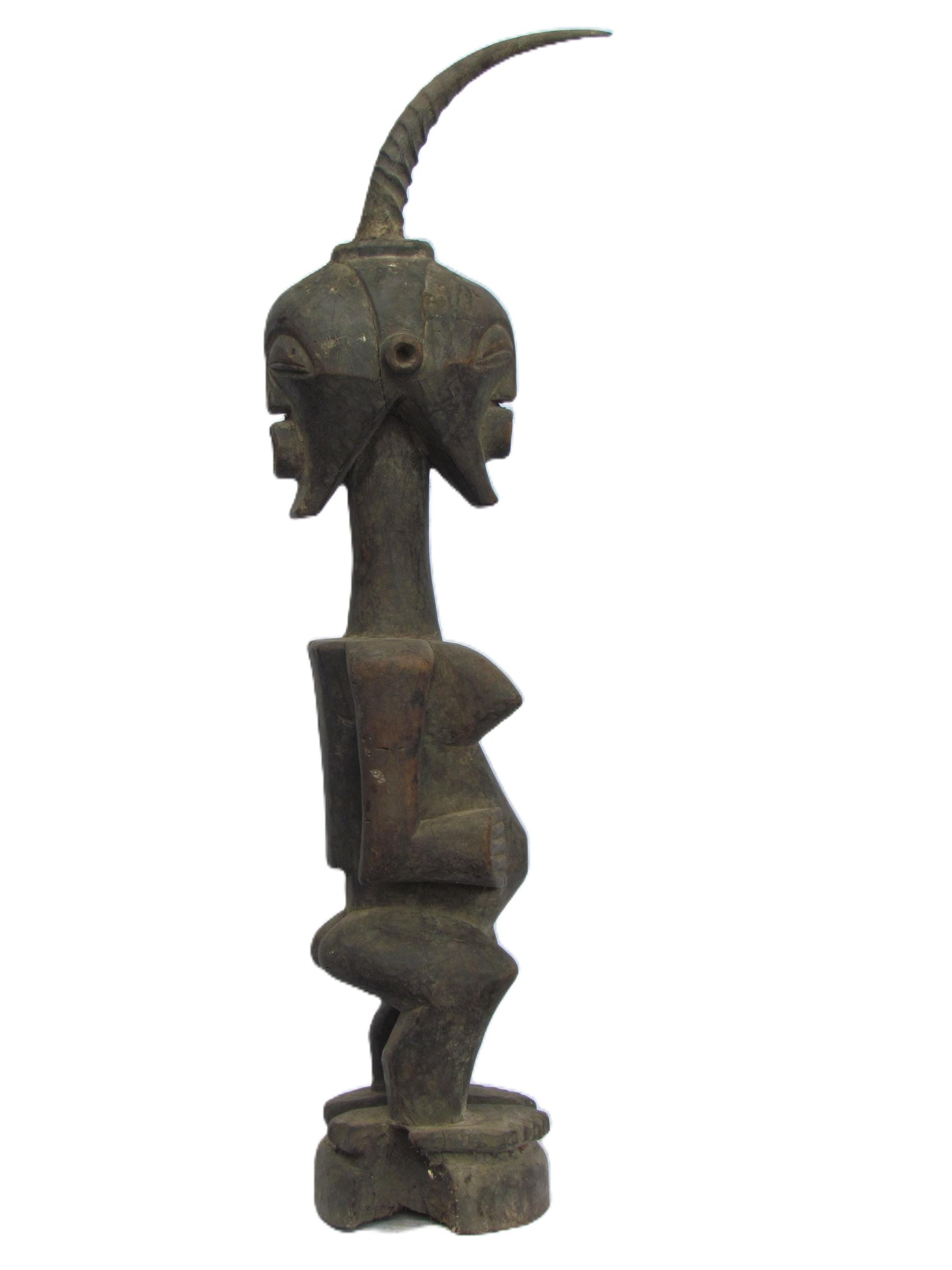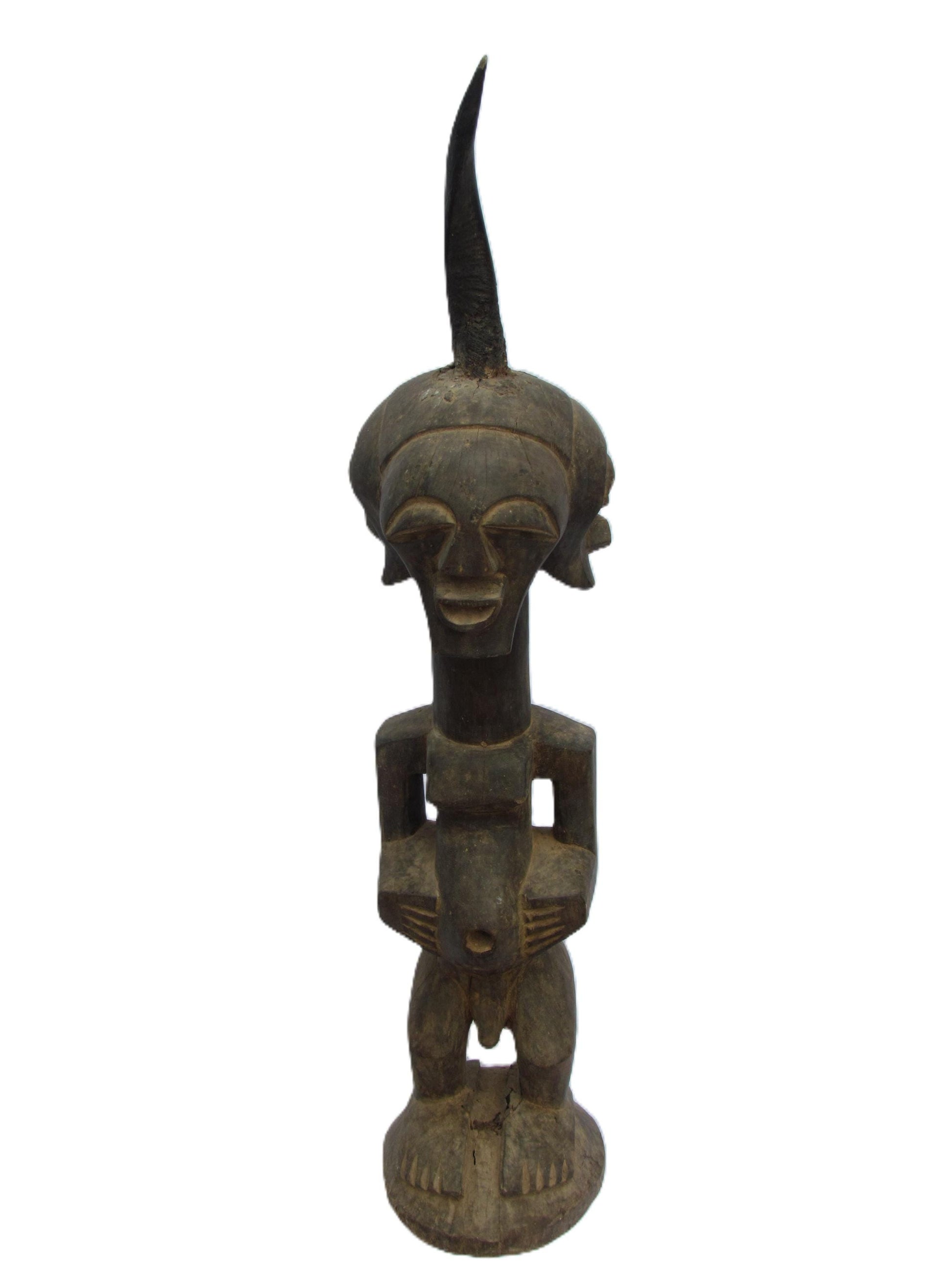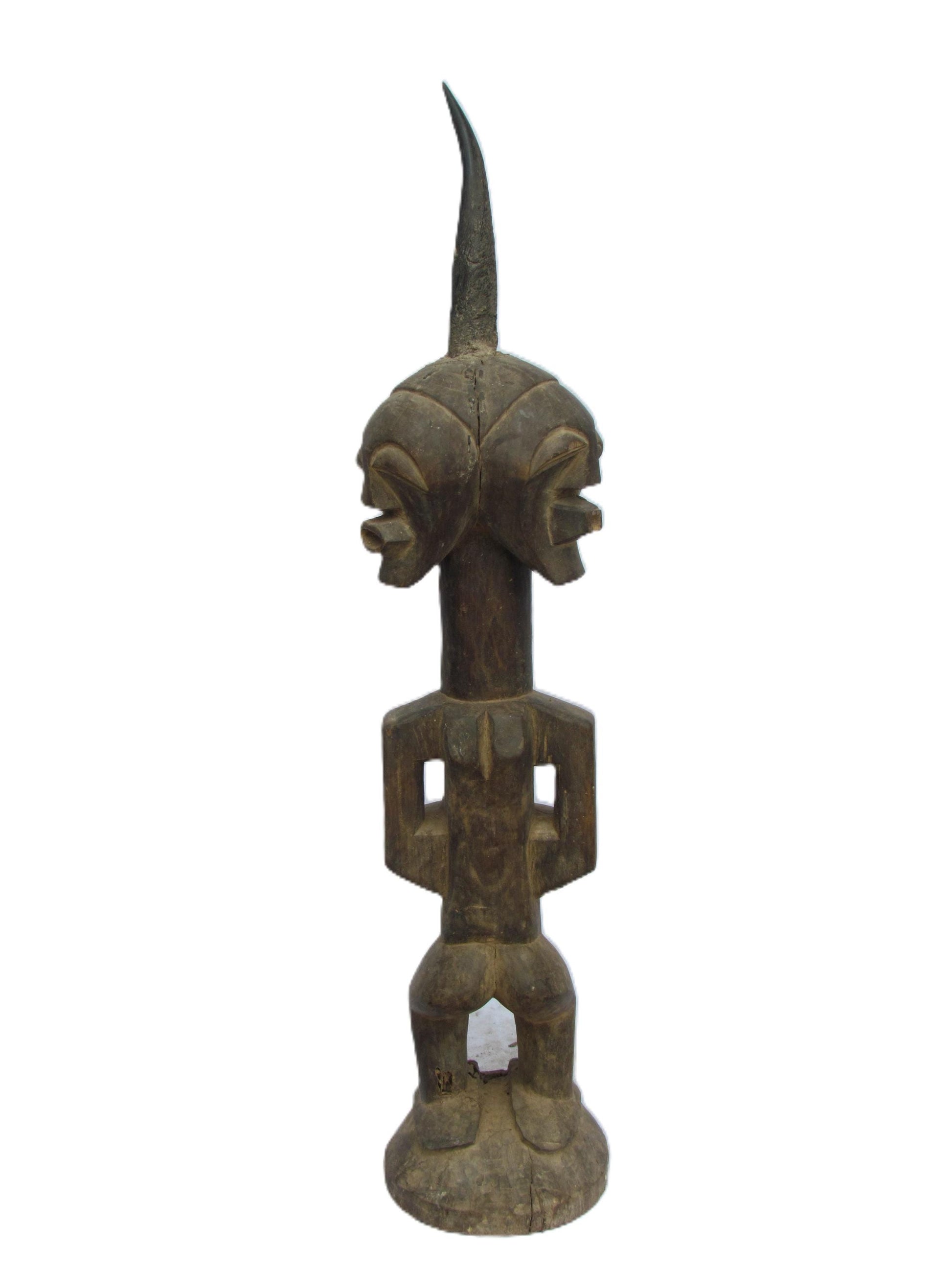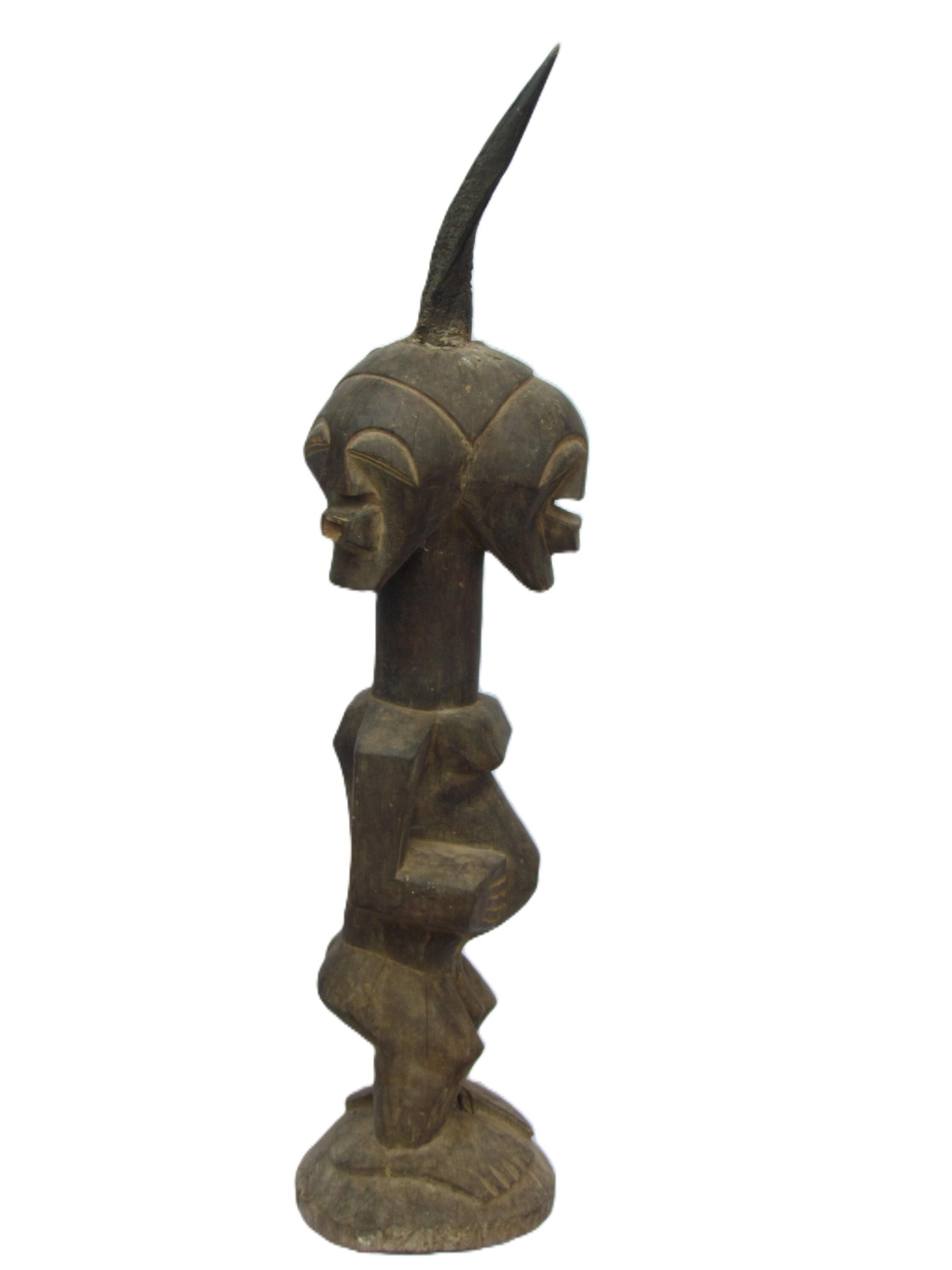 Figura masculina Songye marrón con cuatro caras, RDC - Arte tribal africano.