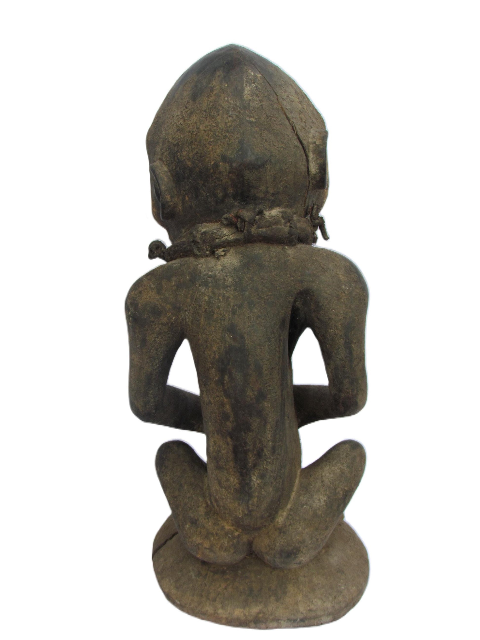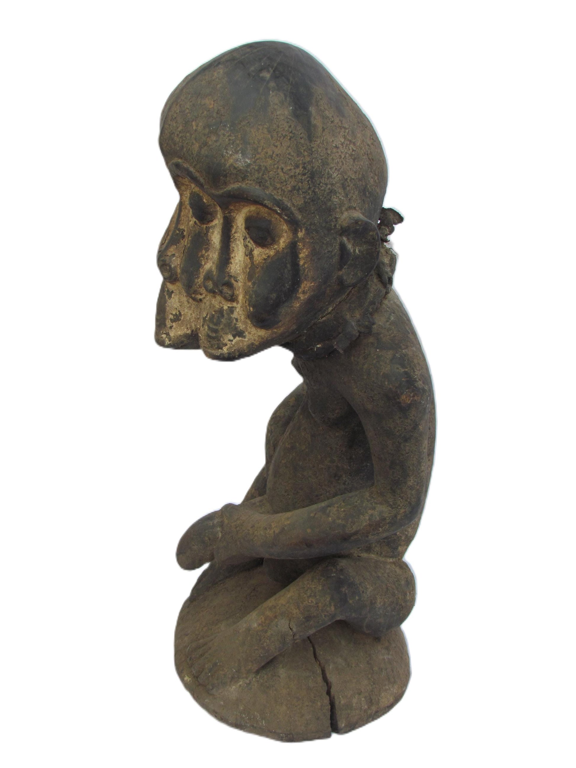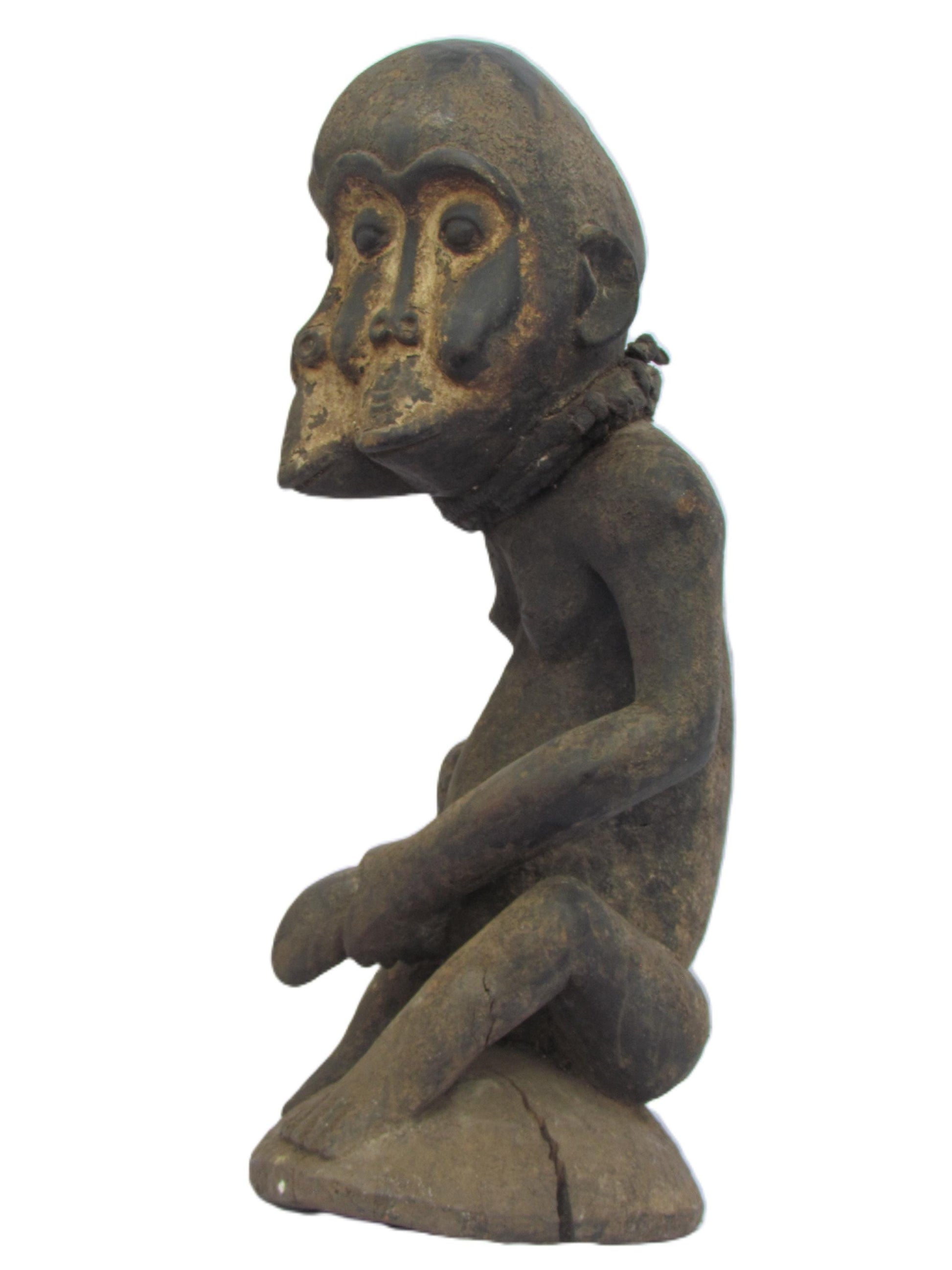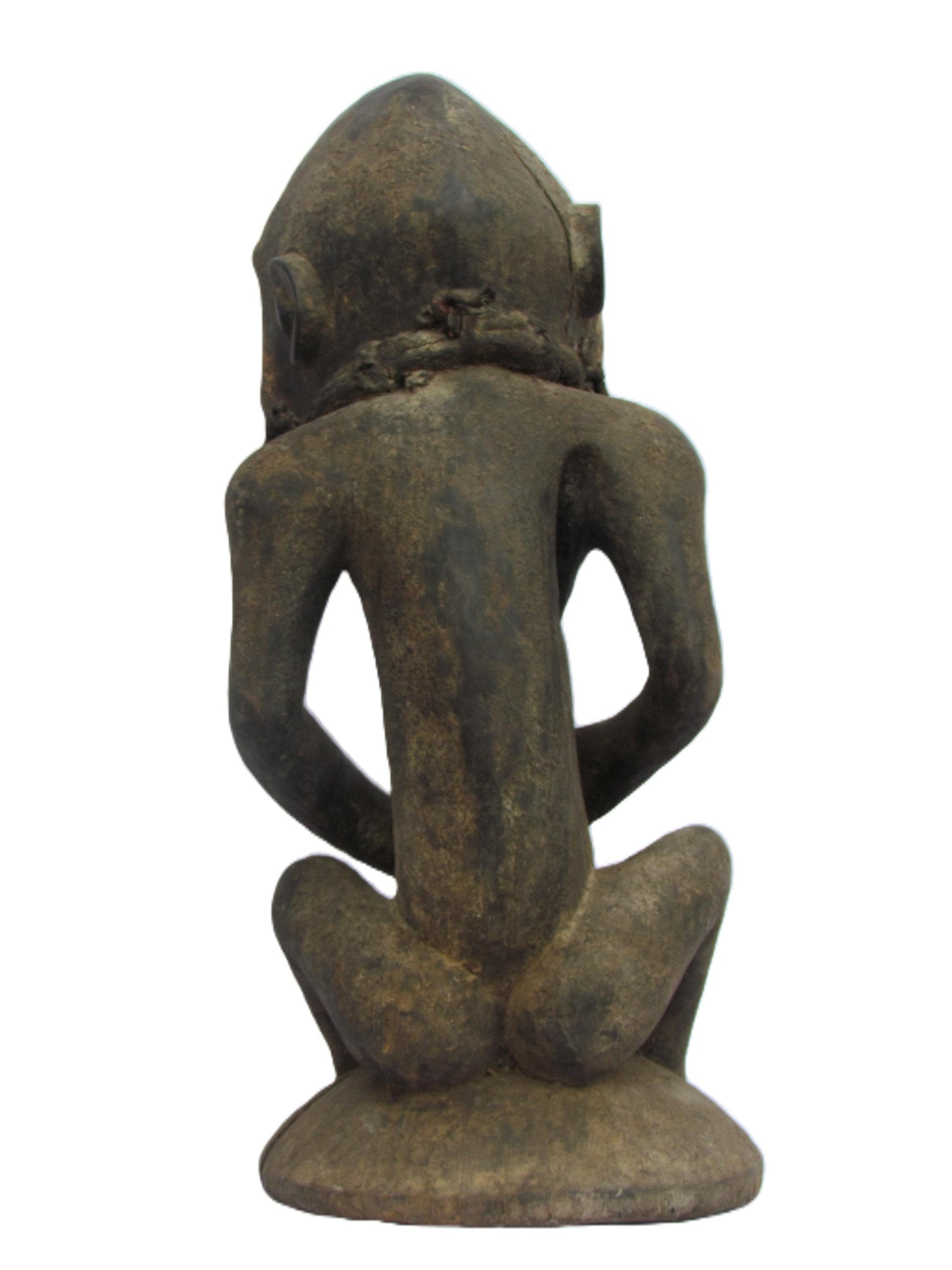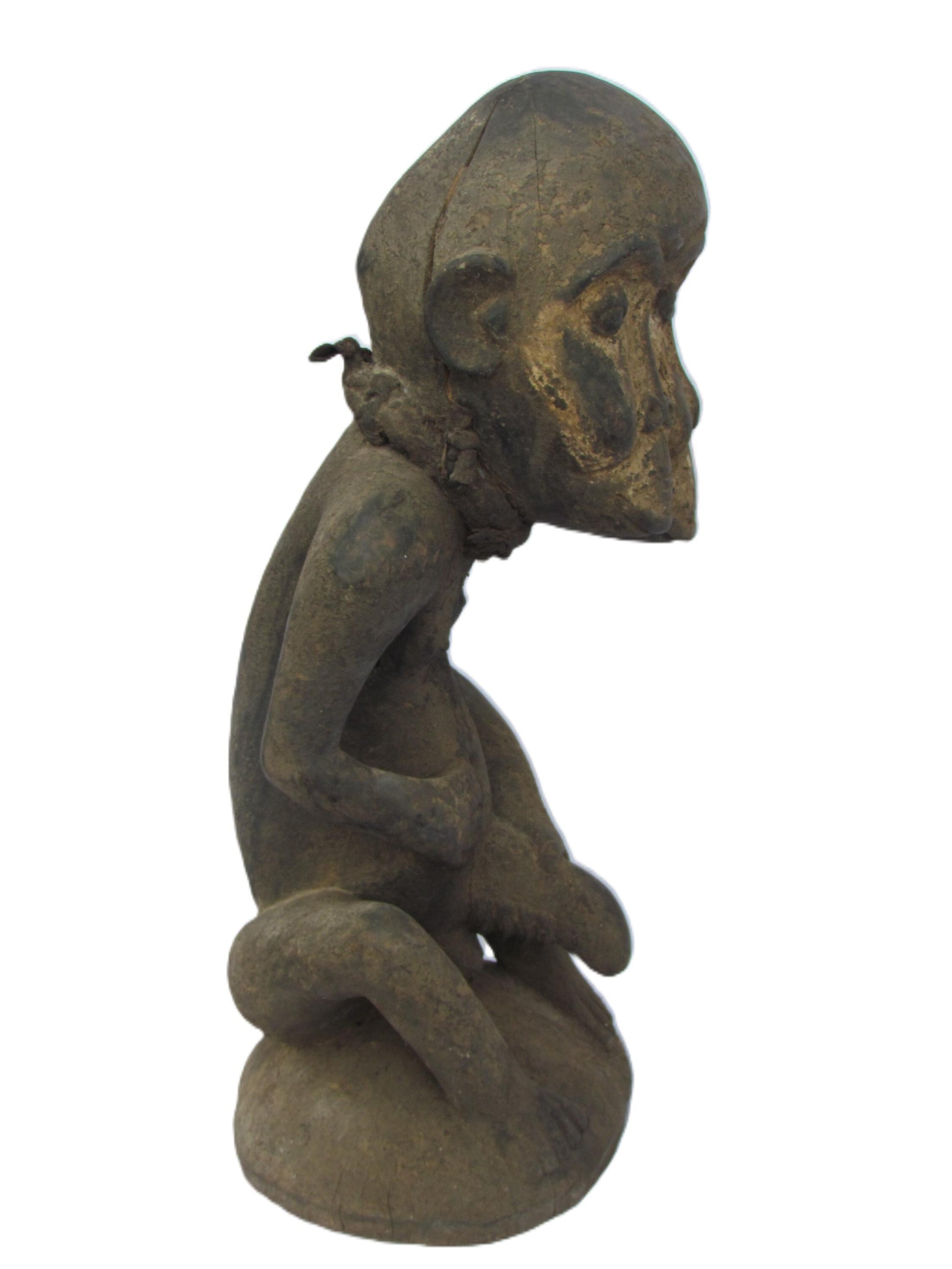 Seating Songo Male Luba Figure holding an elected Genital Organ with Three Faces, Democratic Republic of Congo & Zambia.