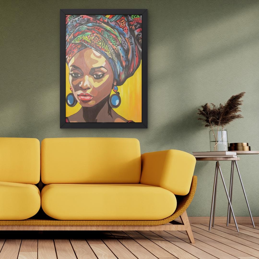 Celebrate the strength, beauty, and heritage of African women with this hand-painted acrylic artwork featuring three Nigerian women in traditional clothing. This stunning piece highlights the vibrant colors, detailed patterns, and symbolic strength of African culture.