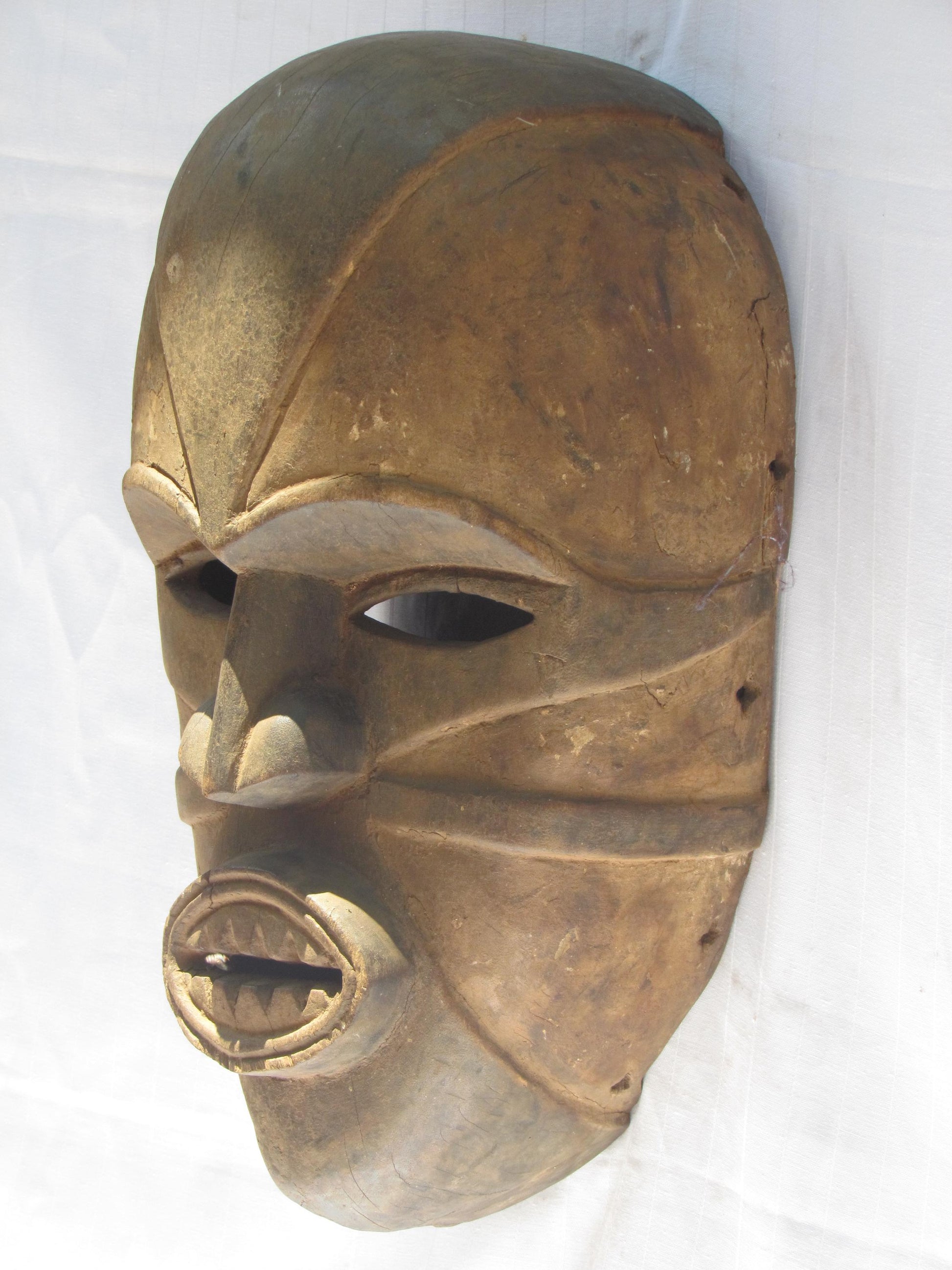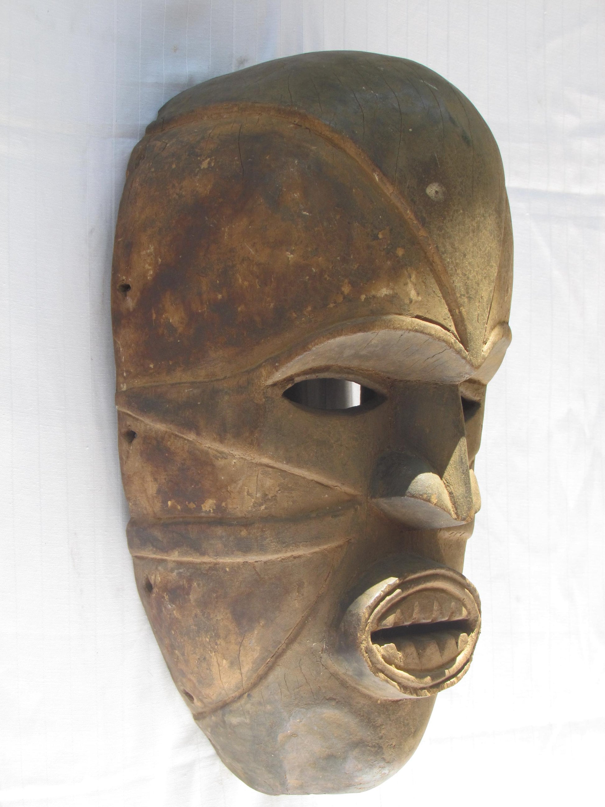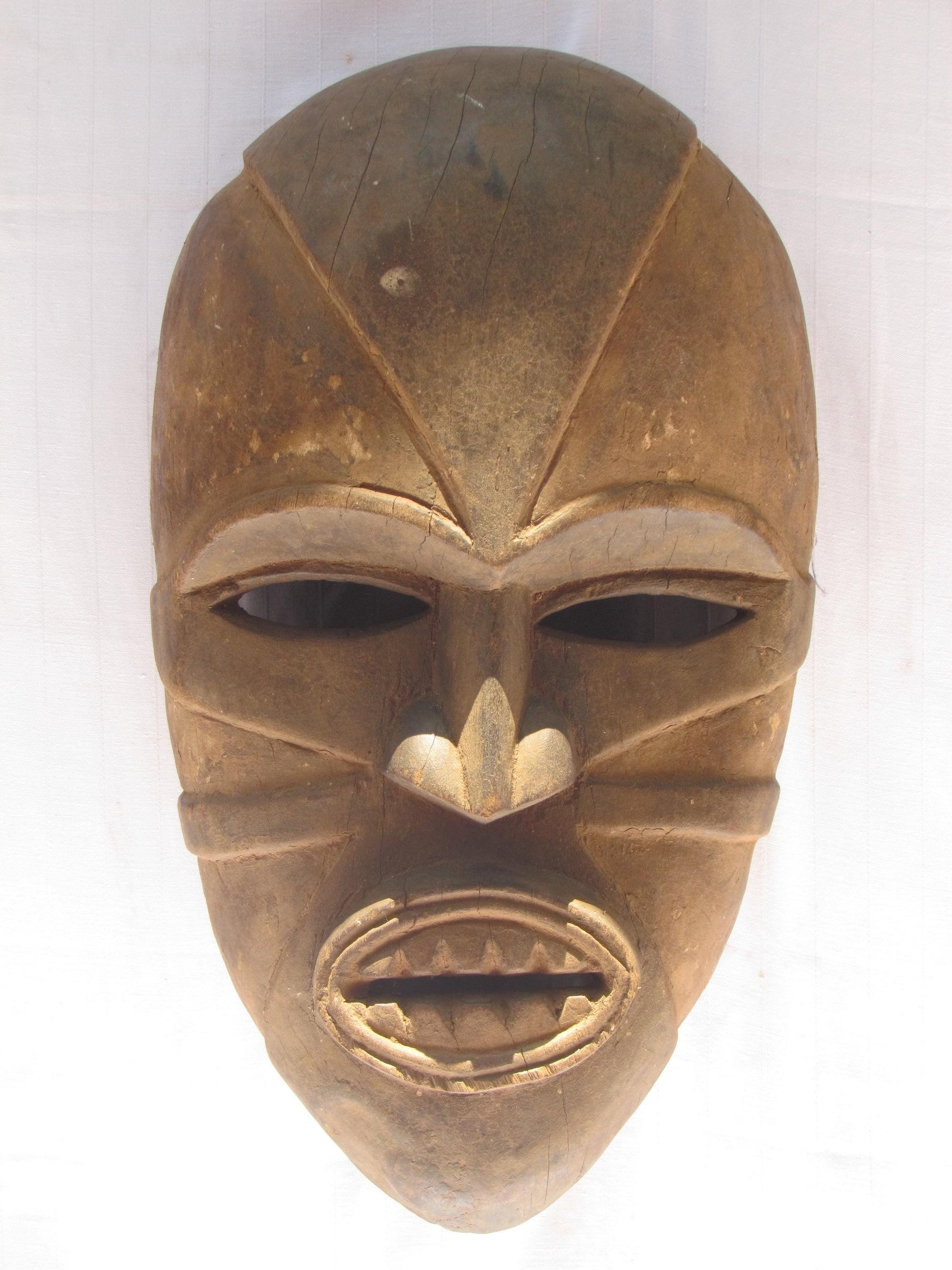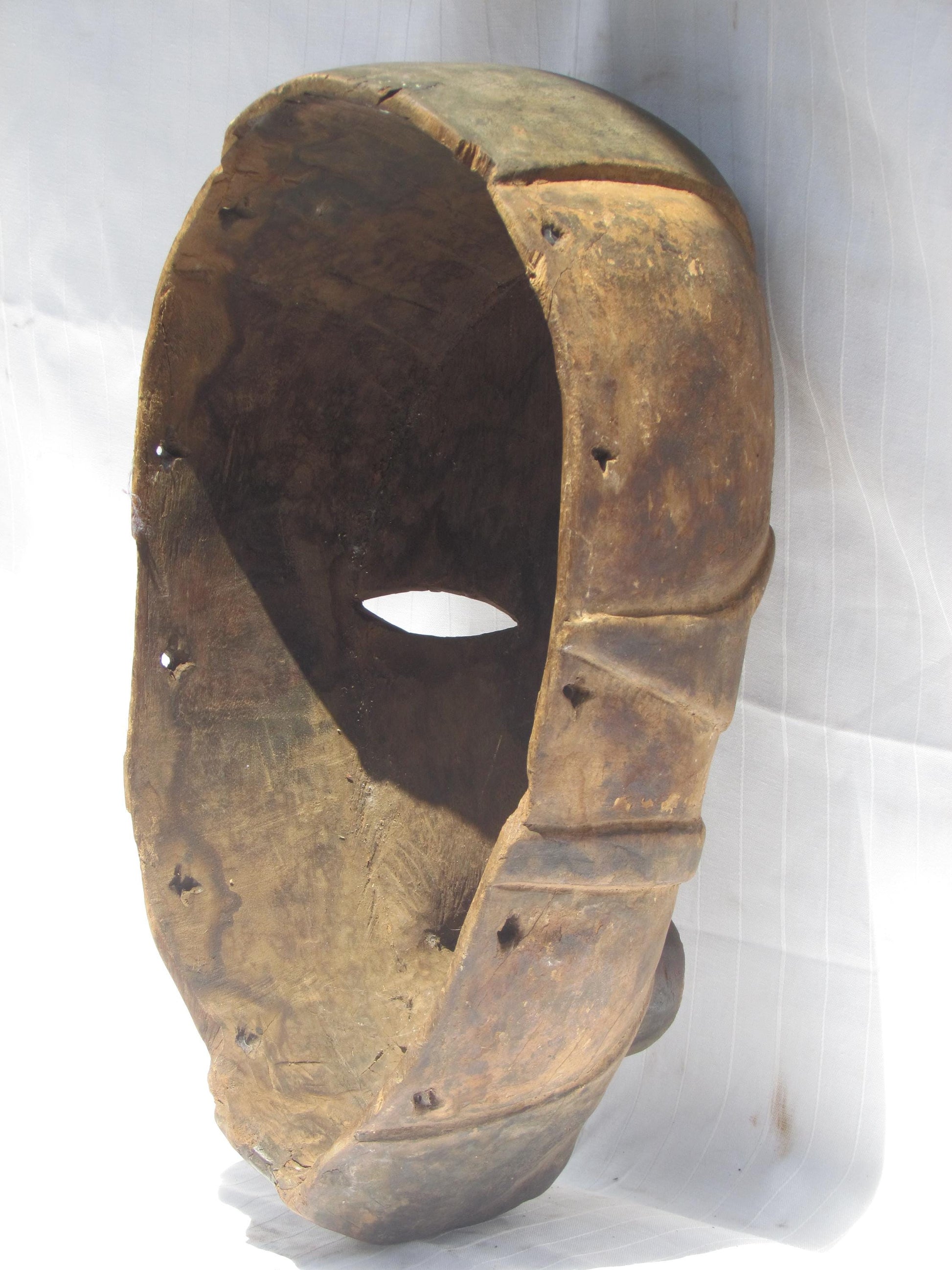 Vintage hand carved wall hanging African traditional wooden mask from D.R.C