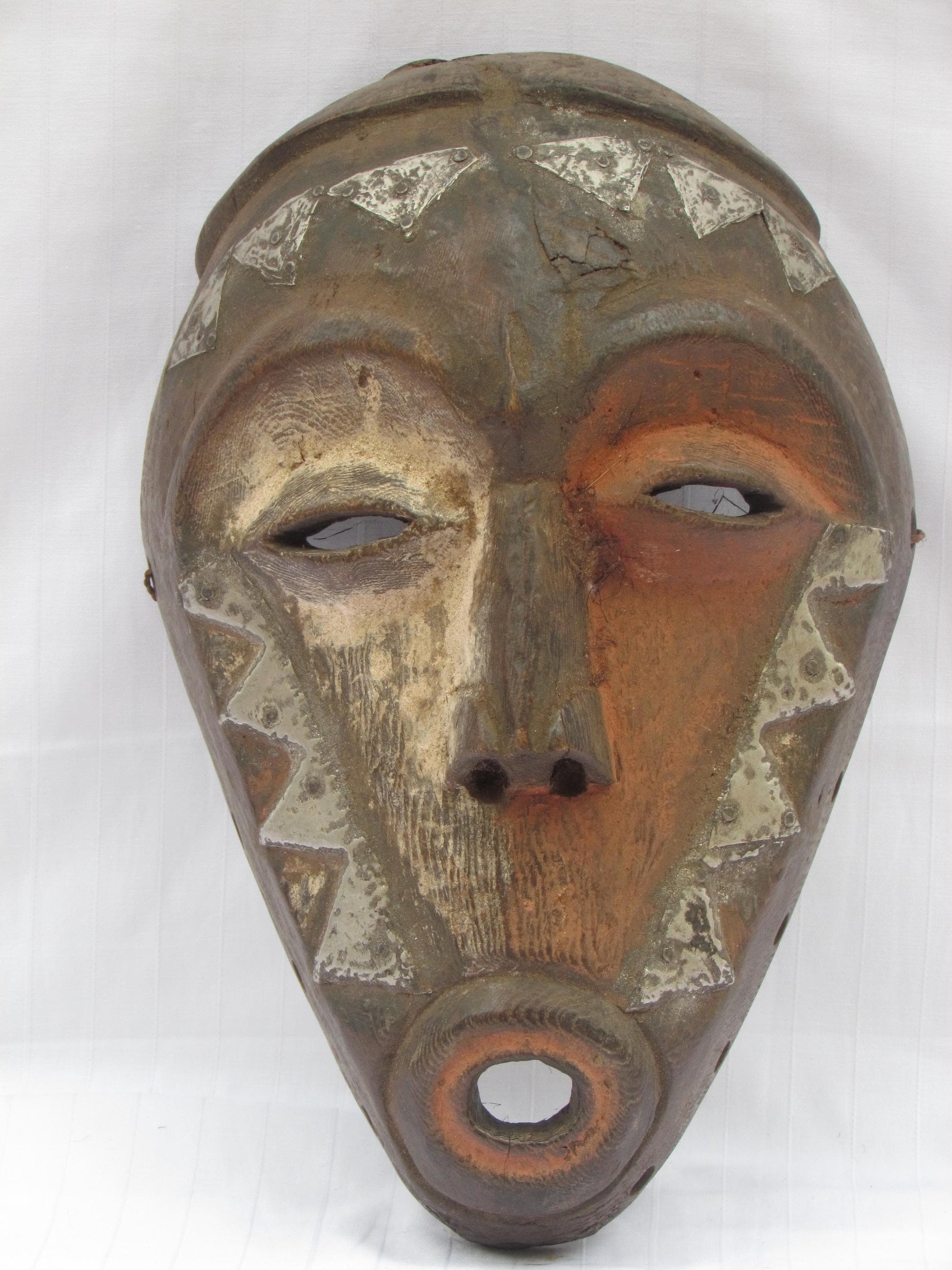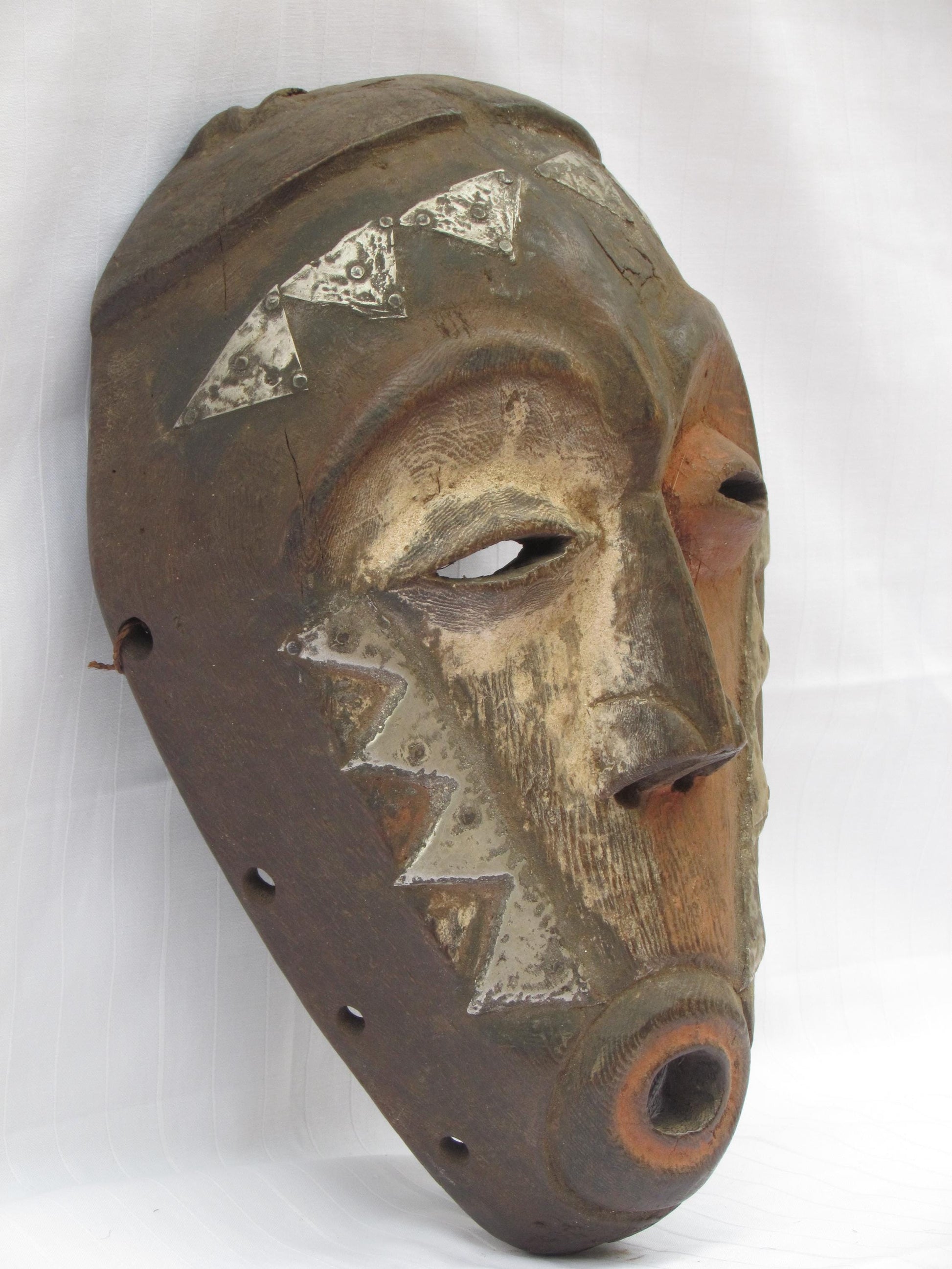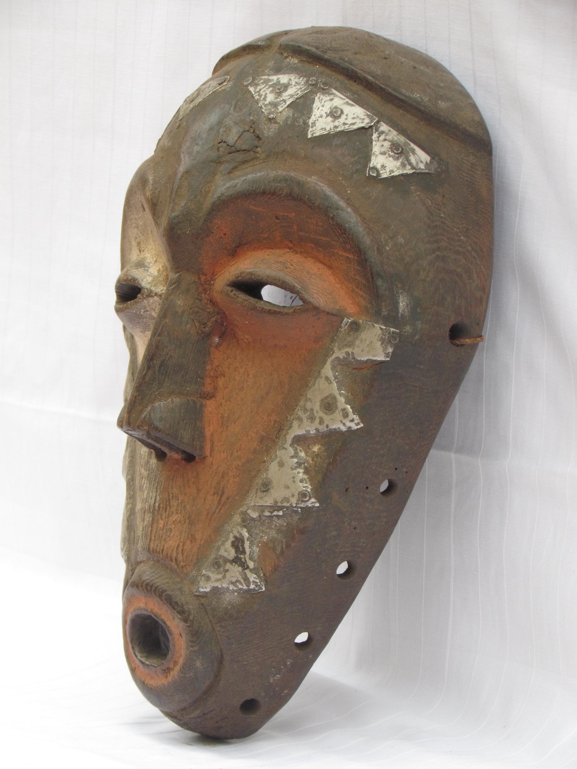 Vintage hand carved wall hanging African traditional wooden mask from D.R.C