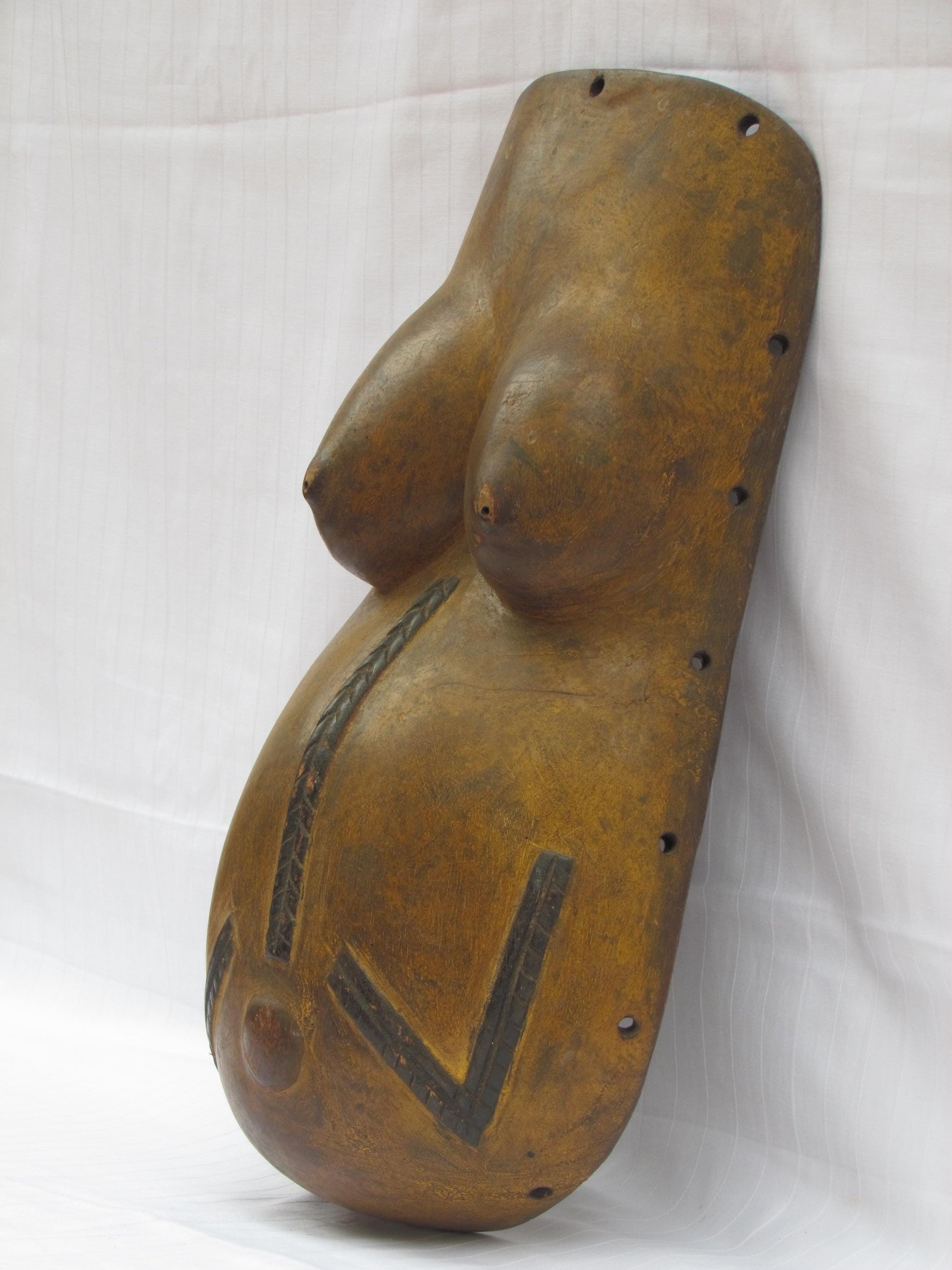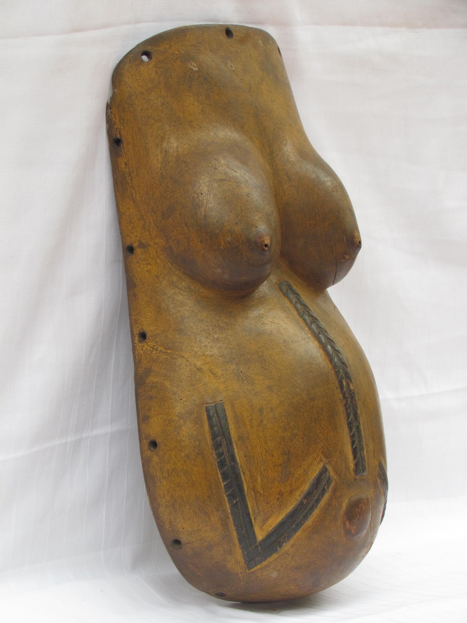 This mask is hand carved from the African country of D.R.C from the Sukuma tribe. This hand carved piece of art is an antique and represents the rich cultural heritage of the Sukuma used for ceremonial events which give you a glimpse into its history and traditions. This wooden art is perfect for collectors or those interested in African art and craftsmanship.